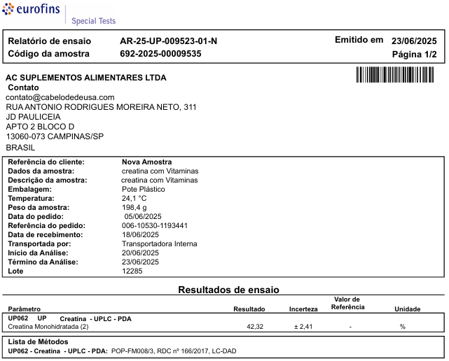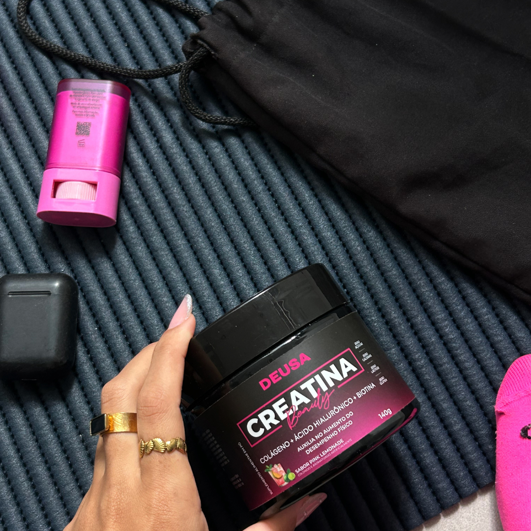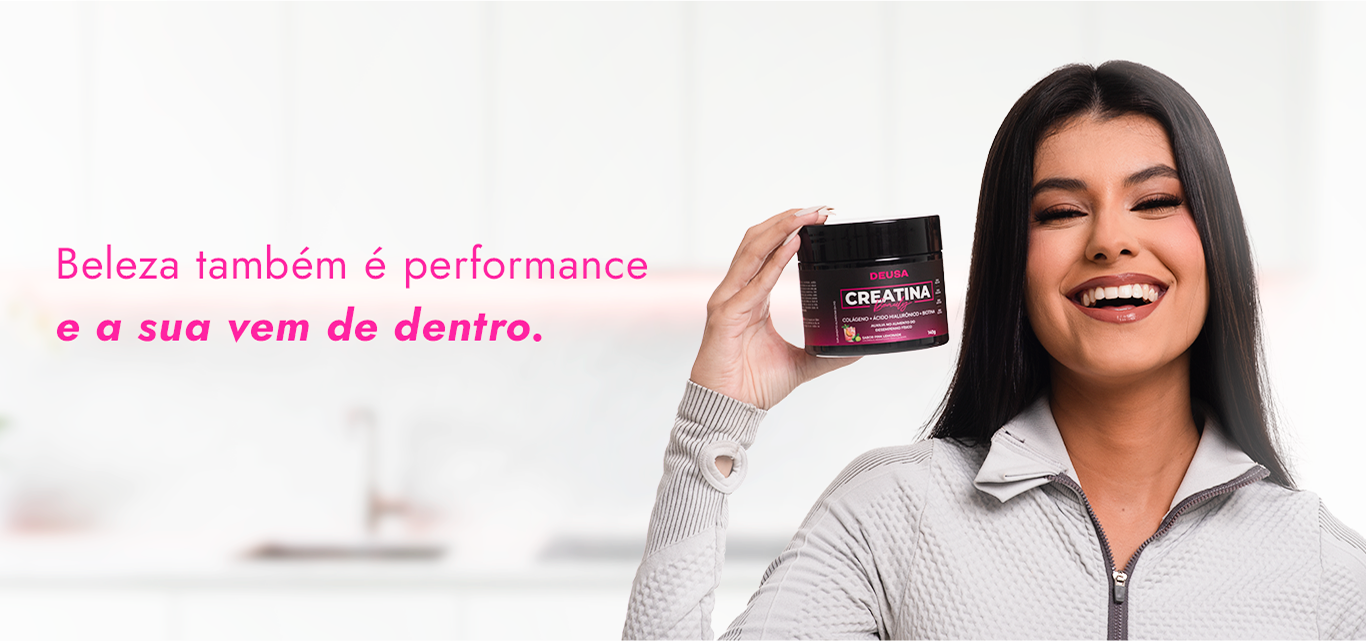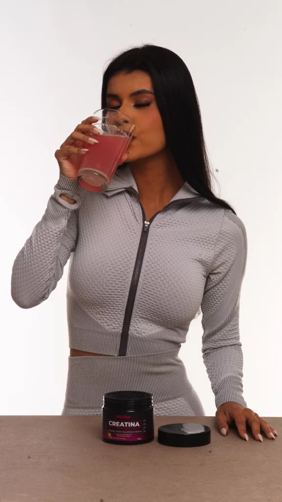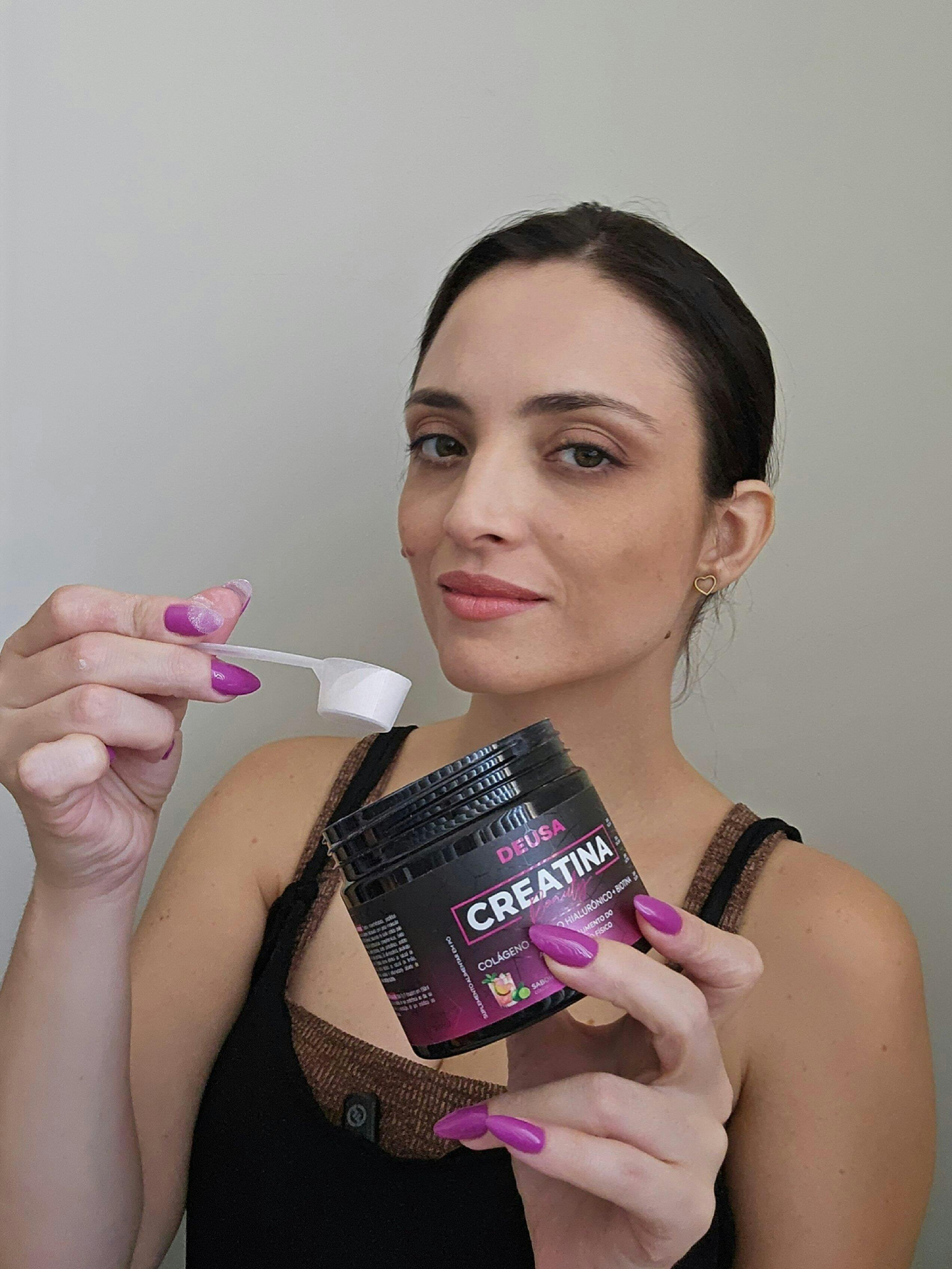 É a única que une performance, rejuvenescimento e beleza no mesmo scoop. Além da creatina pura, ela entrega colágeno Verisol, ácido hialurônico, biotina e vitaminas essenciais.